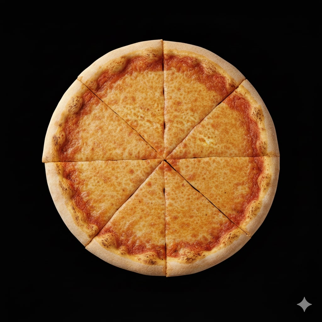 A classic Margherita pizza topped with rich tomato sauce, melted mozzarella, and a hint of herbs on a perfectly baked crust—simple, fresh, and delicious.